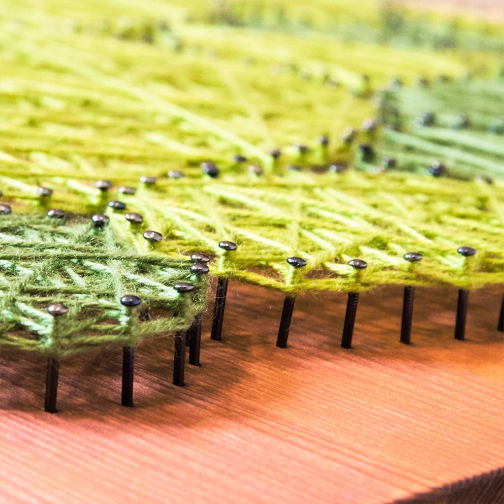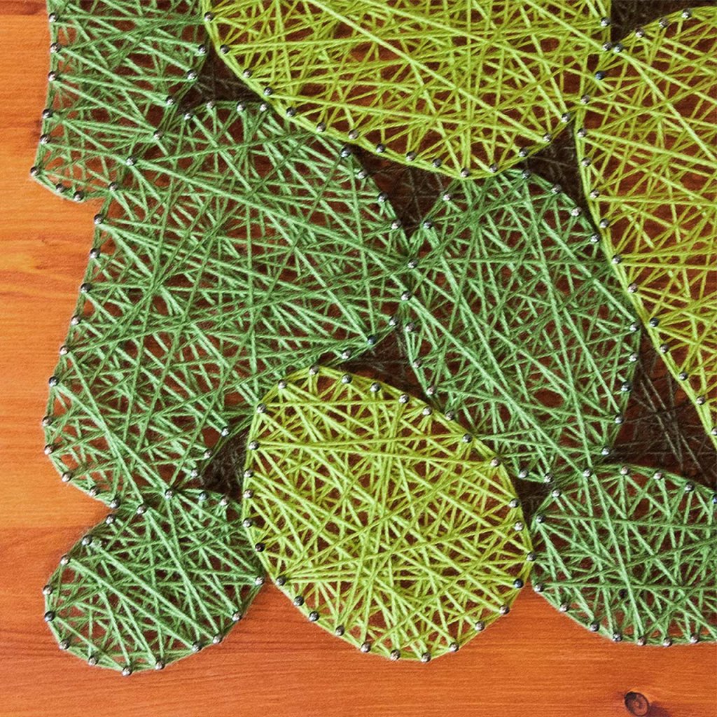 - Machové odtiene zelenej a úrovňové viazanie každej farebnej vrstvy vytvára 3D efekt, ktorý dielu dodáva potrebnú hĺbku. Použitá je akrylová priadza s jemným chĺpkovaním pre dosiahnutie prírodného, organického efektu.