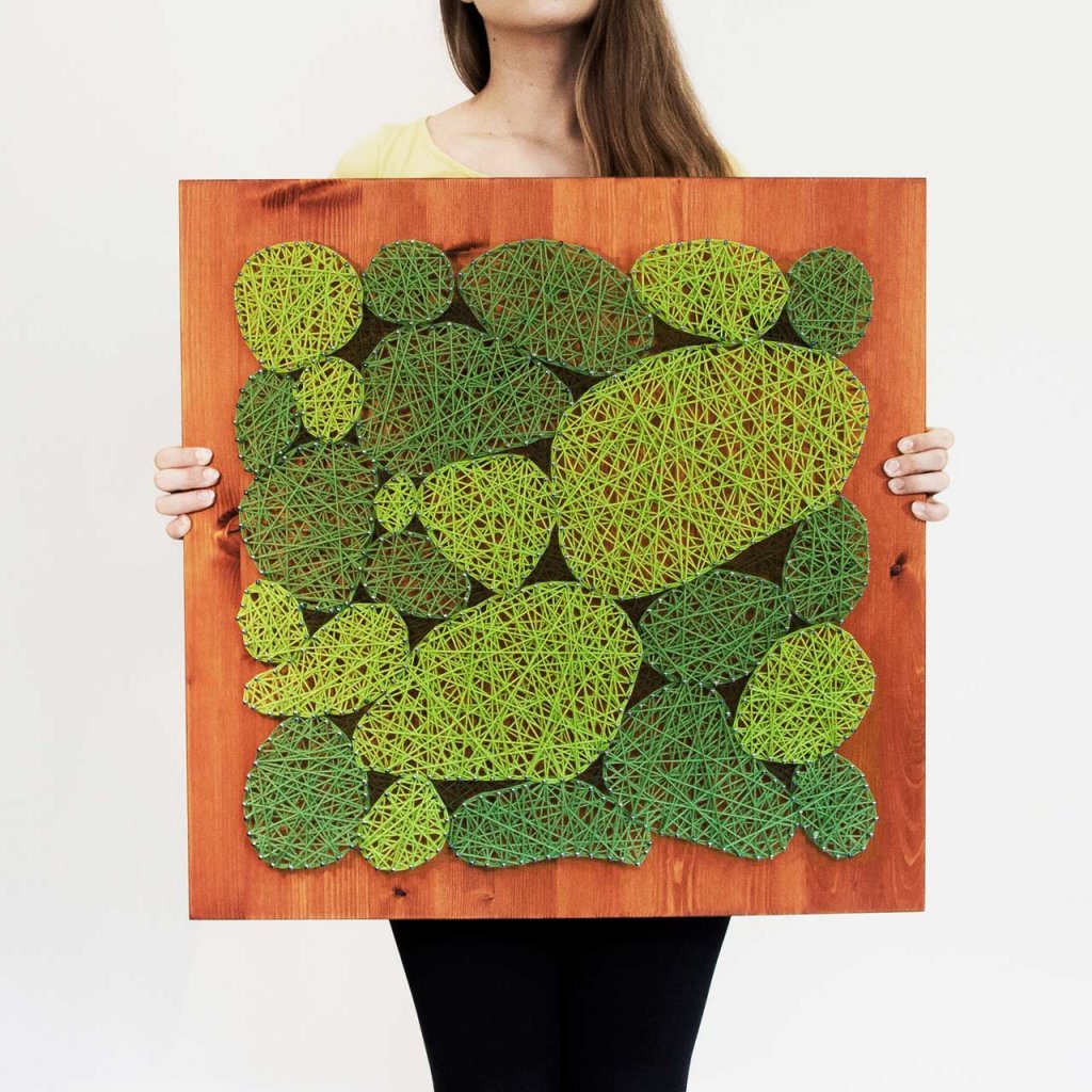- Veľkosť diela je 60x60cm (veľkosť vypletenej časti 50x50cm)